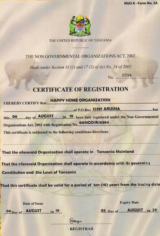 Am 20. September 2007 wurde das Waisenhaus unter dem Namen "Happy Home Organization" durch Frau Angela Katondo Chabai gegründet. Nachdem sie in Rente ging, hat sie es sich zur Aufgabe gemacht, diesen Kindern zu helfen. Diese Kinder stehen ansonsten komplett allein da und müssen sich ihr Essen zum überleben selber suchen oder erbetteln. Zeit für eine wichtige schulische Bildung bleibt komplett auf der Strecke.